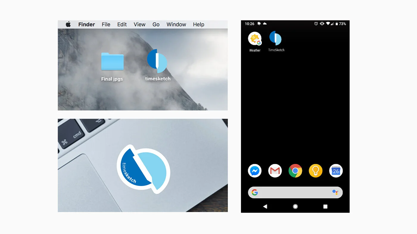 The idea of “sketching” is given more emphasis over the idea of “time” because of the precedence of the problem-solving aspect of the app. Time is an element that already exists at the beginning of an investigation. The task of the user is to analyze time and “sketch” out a conclusion. In this same vein, the logotype presents “sketch” in bold letters while “time” is presented in a lighter text weight.